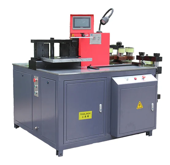 The machine is controlled by a Siemens or Panasonic PLC and touch screen, designed to process copper and aluminum busbars of different specifications. By selecting the appropriate station, users can efficiently perform various operations, including shearing, punching, flat bending, vertical bending, embossing, and flattening.